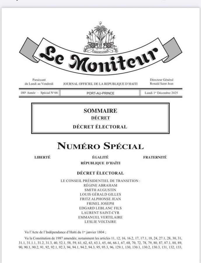 La Transition a franchi aujourd’hui une étape institutionnelle majeure avec l’adoption officielle du Décret électoral par le Conseil des Ministres et sa publication immédiate dans Le Moniteur, le journal officiel de la République. Cet acte, hautement symbolique dans un contexte de fragmentation institutionnelle, réaffirme l’engagement du Conseil Présidentiel de Transition (CPT) et du gouvernement à restaurer un fonctionnement constitutionnel interrompu depuis plusieurs années.